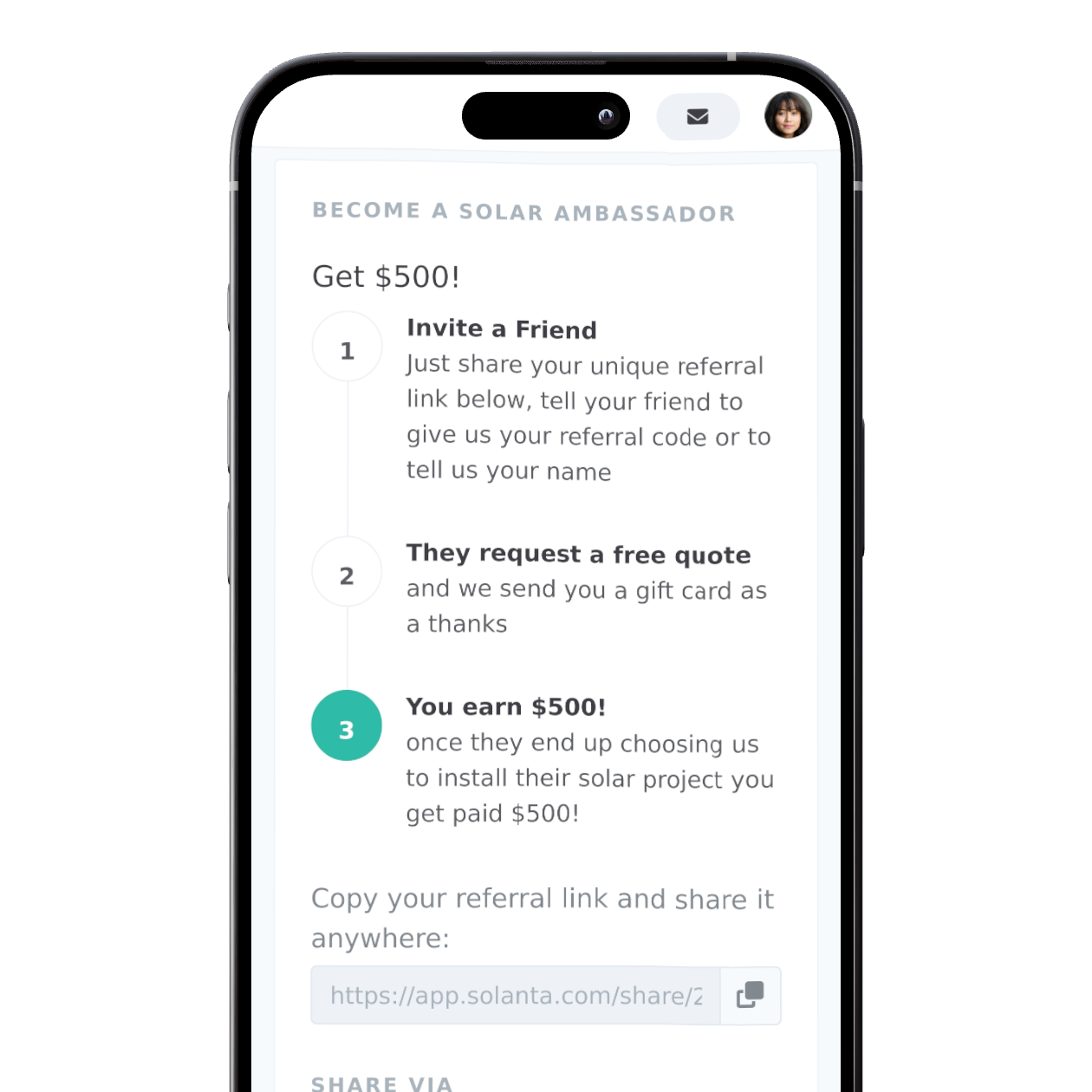 Have you been happy with Solanta? Refer a friend or family member conveniently by sending their contact info through the app or sharing your personalised referral page with them and earn money as a thank you.